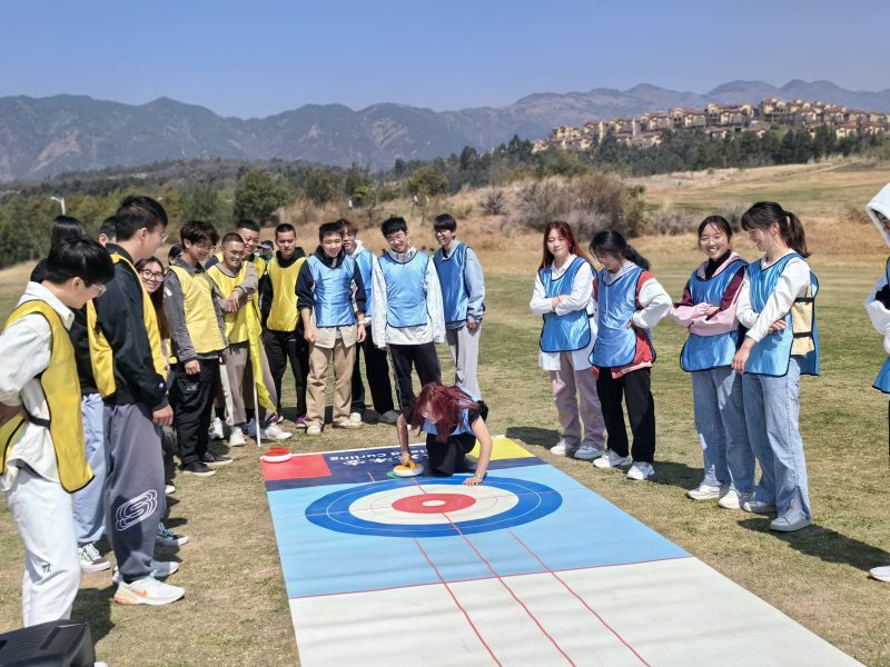 活动设置了飞盘、冰壶、射箭等趣味性环节,也有拓展项目。学生骨干以小组的形式参加活动。活动中,各小组在积极协作和紧密配合中不仅锻炼了相互间的沟通能力,还进一步增强了团队的凝聚力和同学间的信任感。