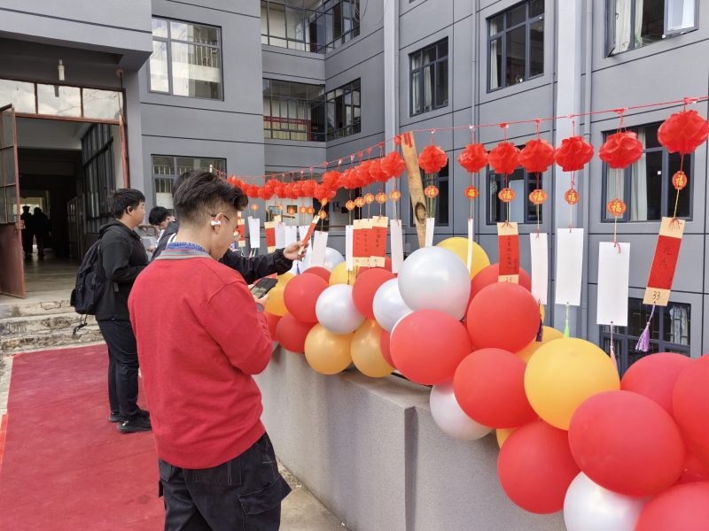 支部党员认真学习《国家主席习近平发表二〇二四年新年贺词》后,游园活动正式开始。活动包含猜灯谜、写福字、剪窗花、投壶、放飞纸飞机、贴鼻子、手脚并用等项目,让远在他乡的同学们体会了家的温暖,感受到了中华传统文化的魅力,互动游戏环节拉近了同学间的距离,增进了团队凝聚力。