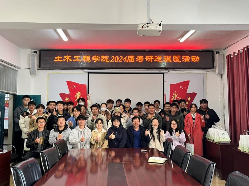 12月20日,土木工程学院召开了考研学子送温暖活动,为即将踏上考场的学子们送上祝福。