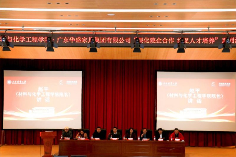 12月5日,材料与化学工程学院与广东华盛家具集团有限公司举行“深化校企合作,共促人才培养”系列活动。广东华盛家具集团有限公司代表汪承松、钟桂洪,学校就业工作处处长张保兰,材料与化学工程学院党委书记孙浩、院长赵平、教师强明礼教授和其他师生代表共计300余人参加活动。活动由学院党委副书记熊春梅主持。