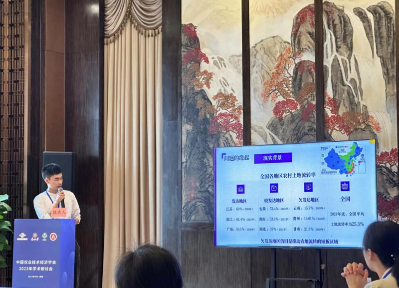 会议期间,来自全国各知名高校及科研院所的48位入选论文青年学者集中围绕“粮食安全与重要农产品稳产保供”“土地制度创新与农业强国建设”“科技创新与农业强国建设”“数字经济与农业强国建设”“绿色发展与农业强国建设” “乡村治理现代化理论与实践”六个专题进行了专场报告和讨论。经济管理学院博士研究生吕明入围“土地制度创新与农业强国建设”分论坛报告,并作了题为《新一轮农地确权与欠发达地区土地流转:促进抑或抑制?》的专场报告。