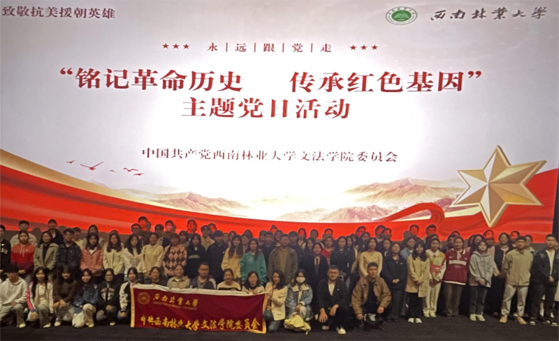 为庆祝中国人民志愿军抗美援朝出国作战胜利70周年,厚植党员群众爱党爱国情怀,进一步坚定党员的理想信念,10月13日下午,文法学院党委组织开展“铭记革命历史 传承红色基因”主题党日活动暨观看抗美援朝爱国题材影片《志愿军:雄兵出击》。