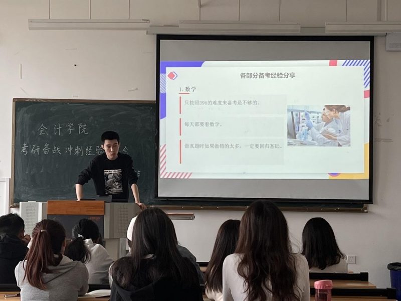 为不断提高会计学院本科生升学率,在前期调研基础上,学院于9月15日分别召开资产评估专硕和会计学专硕的考研备战冲刺阶段经验分享交流会。会计学院副院长李谦出席会议。