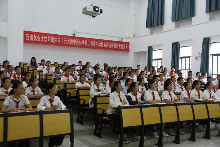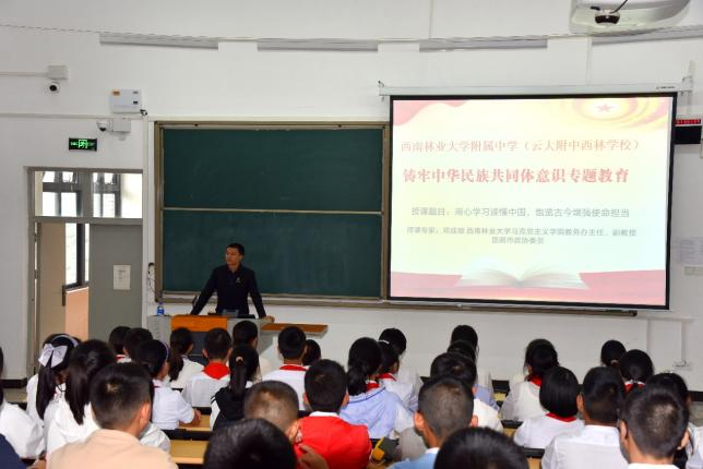 9月1日,bwin必赢唯一官方网站附属中学(云大附中西林分校)举行2023年初一新生“开学第一课”,邀请昆明市政协委员、学校马克思主义学院副教授邓成琼开展题为“铸牢中华民族共同体意识专题教育”的专题讲座。西林附中德育副校长洪涛出席并主持讲座。