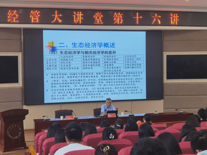 李周研究员结合自己多年的治学经验,系统介绍了生态经济学的概念、研究视角、研究内容,系统性地回顾了生态经济学的历史发展和当前进展,最后对生态经济学未来的研究方向和研究重点做出展望。讲座内容深入浅出、精彩纷呈,为我校农林经济管理学科开展森林生态经济方向相关科学研究指明了方向,引发师生们的思考和讨论,获得在场师生的一致好评。