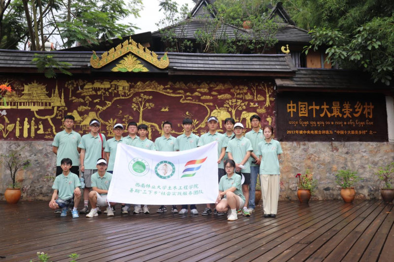 7月12日,土木工程学院暑期“三下乡”社会实践活动第一站来到中国十大最美乡村——曼远村。曼远村位于西双版纳傣族自治州勐罕镇,以傣族“干栏”式传统建筑为主,具有浓郁的民俗民风特色,是勐罕镇保存较为完好的第二代傣族“干栏”式建筑村寨。