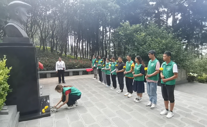队员们在讲解员的带领下依次参观了杨善洲墓园、老窝棚、老场部、故事林、善洲小道、杨善洲事迹陈列馆,向杨善洲同志铜像敬献鲜花。党员同志在张国胜老师的带领下,重温入党誓词。队员们深刻感悟杨善洲老书记扎根大亮山艰苦创业、植树造林的历史,以及为国家无私奉献的精神。