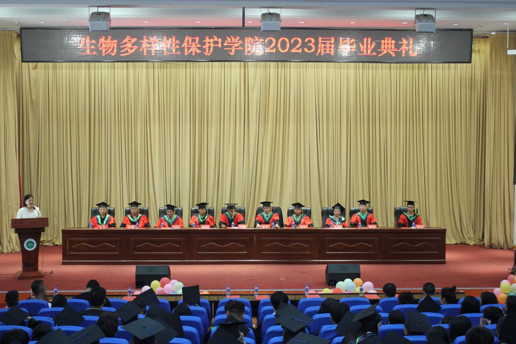 5月30日,生物多样性保护学院在图书馆大报告厅举行2023届毕业典礼。生物多样性保护学院党政领导班子、学位分委员会委员、学院教授、毕业班班主任和2023届全体毕业生参加活动,典礼由学院党委副书记唐甜甜主持。