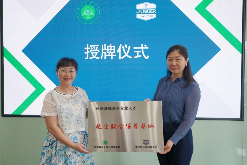为进一步搭建校企合作交流平台,深化产教融合,5月27日至29日,外国语学院党委书记姜丽红,学院李秀梅教授,以及团委书记、组织员一行前往重庆渝数治(重庆)科技有限公司、重庆维雅农业开发有限公司、重庆钜沃律师事务所开展访企拓岗专项行动暨“校企联合培养基地”授牌仪式。