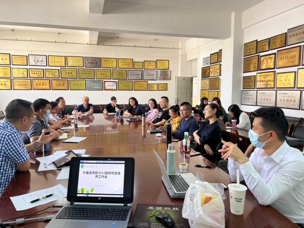 何新元首先对外国语学院2023级两个硕士点研究生招生情况进行通报,并对2023年秋季学期相关准备工作提出要求。翻译、汉语国际教育两个专业硕士学位点负责人苏秋军博士、姚洋博士就2023级外国语学院研究生培养方案的基本结构、课程设置以及具体教学任务安排进行了说明。与会教师就以上议题进行自由发言讨论。