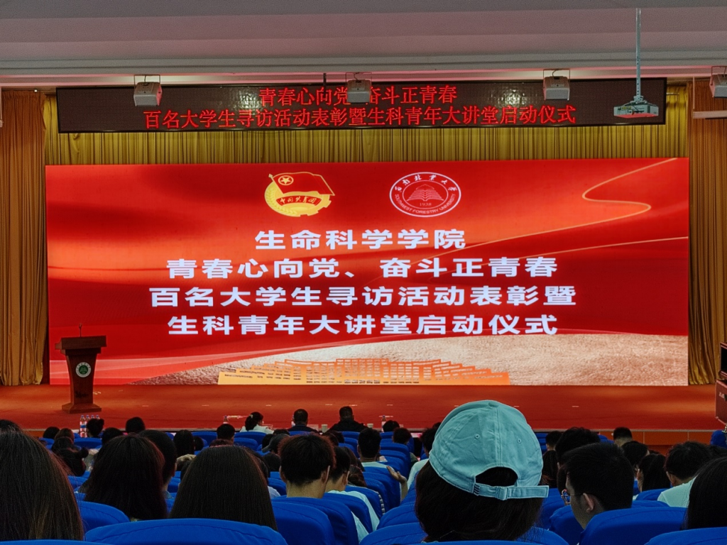为深入推进学习贯彻习近平新时代中国特色社会主义思想主题教育,落实立德树人根本任务,凝聚榜样力量,5月24日,生命科学学院举行“青春心向党 奋斗正青春”百名大学生寻访活动表彰暨生科青年大讲堂启动仪式,校团委副书记王长祺,生命科学学院党政负责人、受表彰代表以及全体大三同学参加活动,活动由学院团委负责人毛祥忠主持。