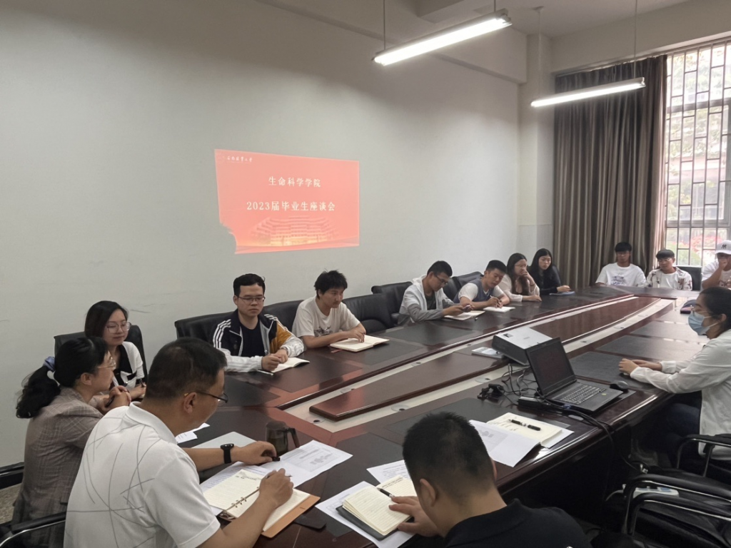 5月19日,生命科学学院召开2023届毕业生座谈会,学院党委书记王永生、副书记陈敏以及学院各职能负责人与21位来自不同专业的本科、硕士毕业生代表进行深入交流,倾听同学们的成长心声,送上学院对毕业生的祝福,对同学们向学院发展提出的意见和建议表示感谢。