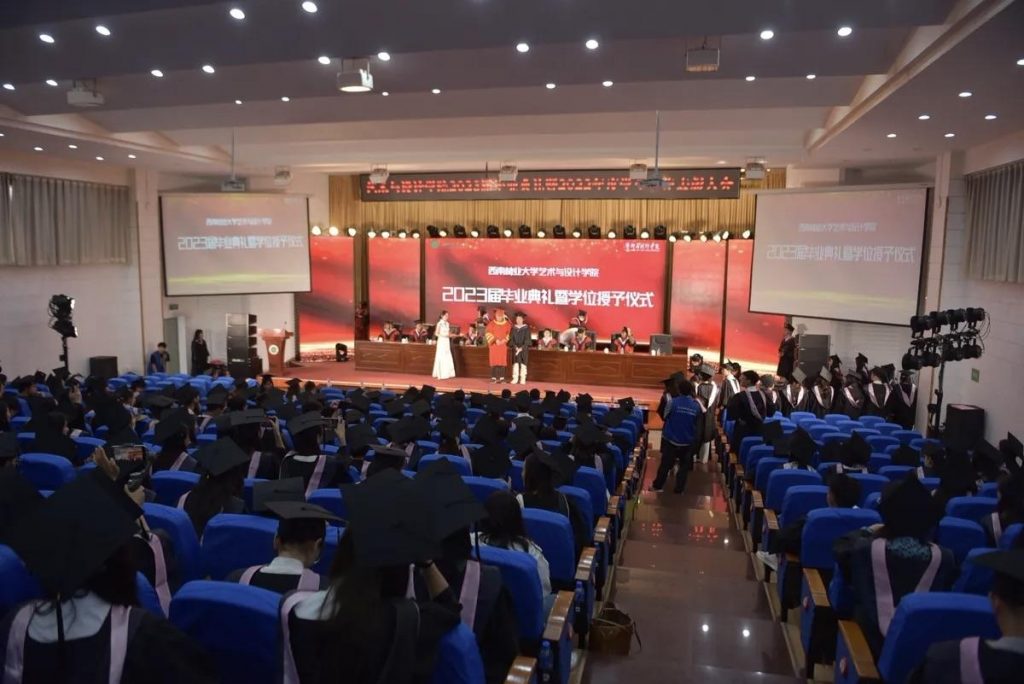 5月12日,艺术与设计学院2023届学生毕业典礼暨学位授予仪式在第一图书馆大报告厅隆重举行。校团委、保卫处、武装部等相关职能部门负责人,艺术与设计学院党政领导班子、教师代表及2023届全体毕业生参加典礼。毕业典礼由艺术与设计学院党委书记张德国主持。