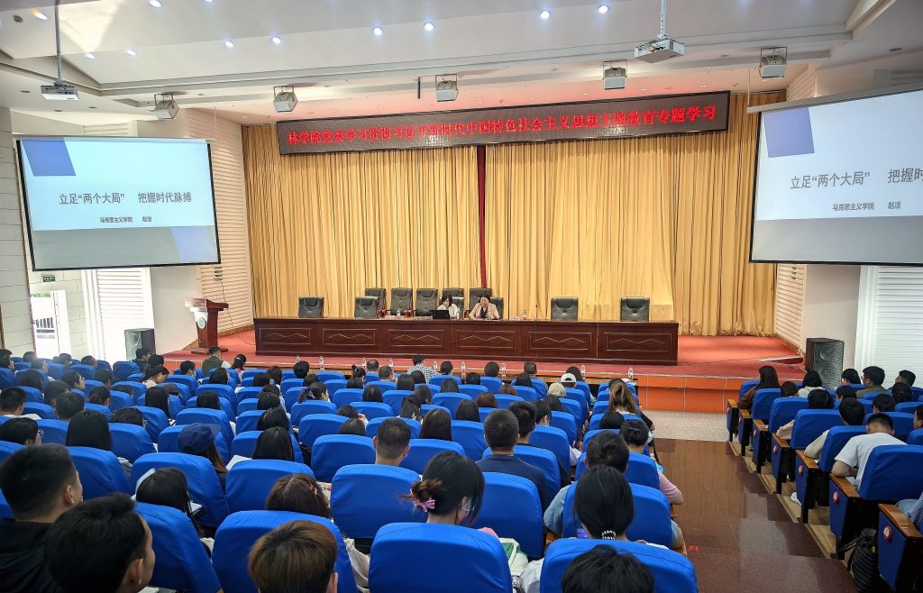 为进一步推进学习贯彻习近平新时代中国特色社会主义思想主题教育,近日,林学院党委邀请获得2023年第六届全国高校青年教师教学竞赛思政课专项组二等奖的马克思主义学院赵洁老师,为学院全体老师和党员、发展对象、积极分子讲授学习贯彻习近平新时代中国特色社会主义思想主题教育专题讲座,同时也是学院“万名党员进党校”的一次集中学习会,学院全体教师参会。