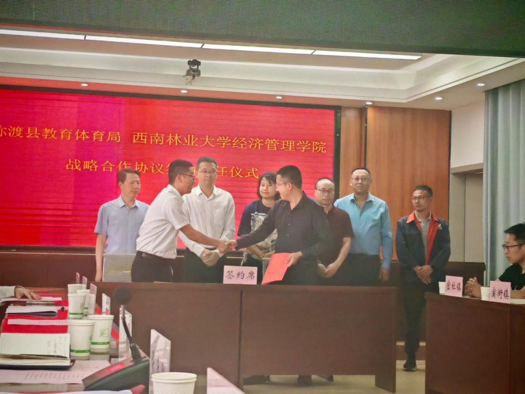 经济管理学院与弥渡县教育体育局签订合作协议。学院领导班子成员为李聪、单文武、邹平颁发公共管理硕士(MPA)教育中心行业导师聘书。