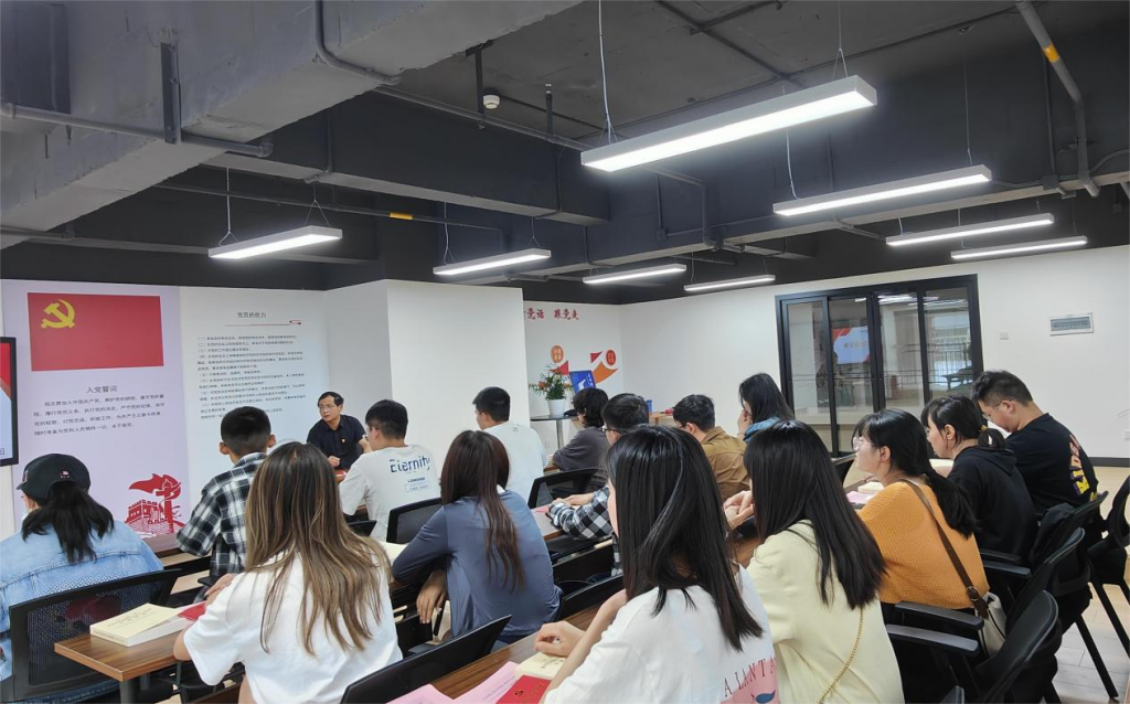 活动开始后,全体党员面对鲜红的党旗, 重温入党誓词。学院党委书记彭建松领学《中国共产党章程》、习近平总书记致云南大学建校100周年贺信、《习近平新时代中国特色社会主义思想专题摘编》等,并讲授专题党课。他勉励党员同志要坚持读原著、学原文、悟原理,勇于“亮身份·践承诺”,在学习生活工作中发挥先锋模范作用,为推进本单位高质量发展做出新贡献。