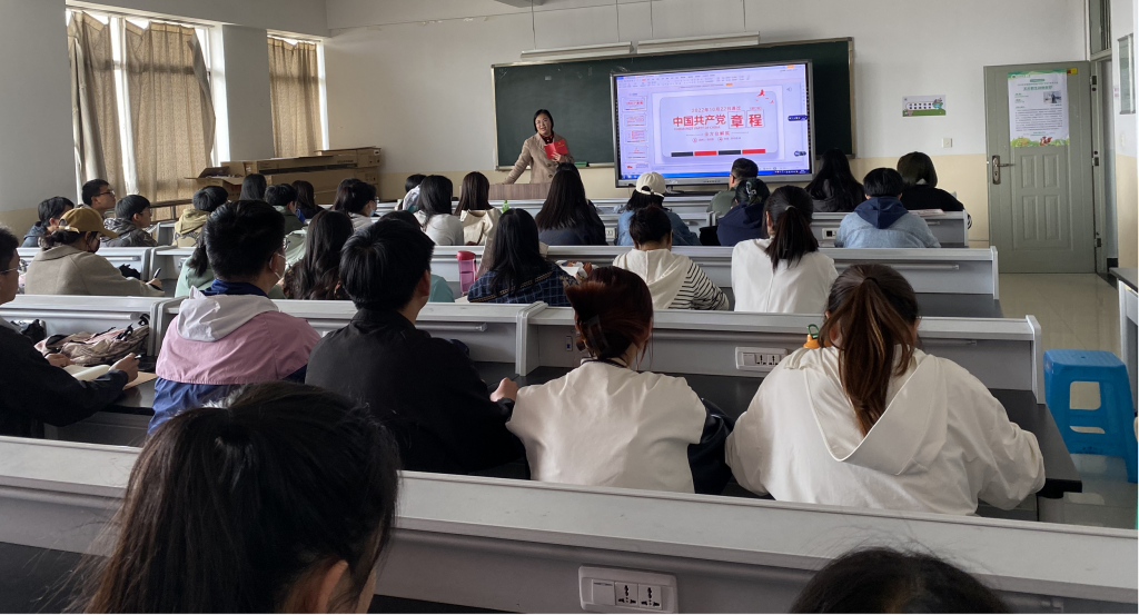 培训采取理论学习和视频学习相结合,以集中学习的形式开展。庄翔麟和唐甜甜为入党申请人详细讲解党的二十大通过的《中国共产党章程(修正案)》,深学党章要义,在学深悟透中践行初心使命,把学习党章精神同学习习近平新时代中国特色社会主义思想结合起来,同学习党的二十大精神结合起来,做到融会贯通、入脑入心,引领同学们深入思考党章对党员的要求,做到联系实际、求真务实。