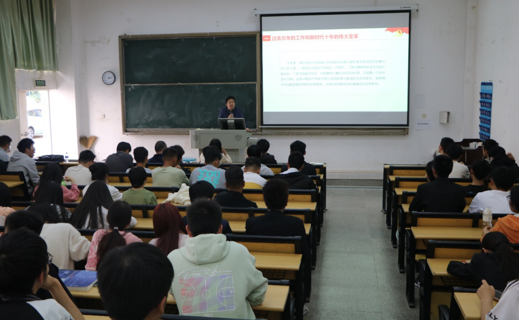 宣讲从“过去五年的工作和新时代十年的伟大变革、开辟马克思主义中国化时代化新境界、新时代新征程中国共产党的使命任务”等方面,带领师生学习党的二十大报告。宣讲内容丰富,让与会师生更加深刻理解党的二十大报告的深刻内涵和精神实质,对推动党的二十大精神往深里走、往心里走、往实里走具有良好的意义。