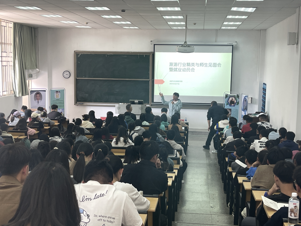 3月17日下午,邱守明邀请云南腾云国际旅游集团、西双版纳勐远仙境景区、世纪金源大酒店和云南汇达文化旅游产业发展有限公司四家企业与学生开展行业见面交流会,开展多种形式的访企拓岗就业行动,四家企业从景区、酒店、旅行社和研学四类旅游产业与学生进行交流。