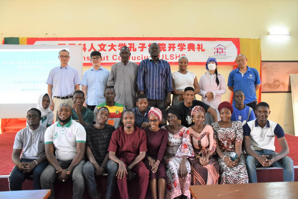 近日,学校马里巴马科人文大学孔子学院举行2023届汉语言专业本科毕业生实习动员会暨培训会。孔子学院全体教师、阿斯基亚中学孔子课堂中马方负责人和孔子学院2023届毕业生参加。