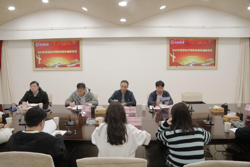 基建处处长汤为明、国有资产管理处副处长曾睿分别对10家工程项目和20家政府采购项目的招标代理机构提出具体的工作要求。各代理机构负责人均表示将筑牢廉洁自律防线,严格遵守国家法律法规,认真执行政府采购及招标各项规章制度,为学校招标采购把好关,服好务。