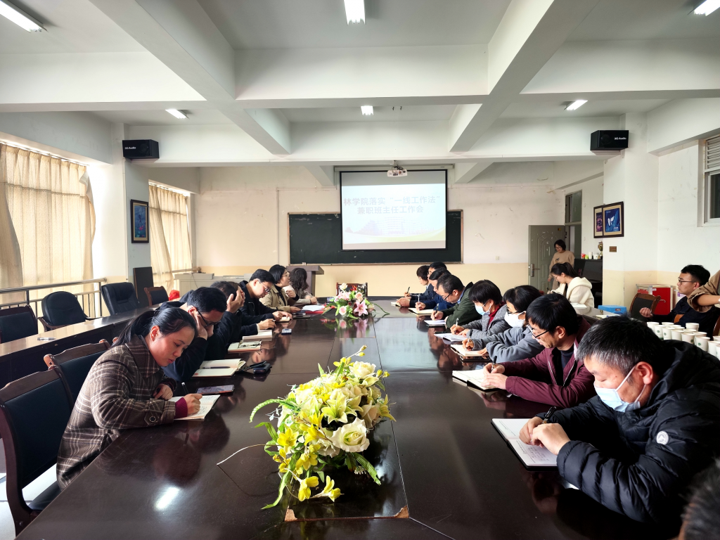 会上,学院党委书记张大才向各部门表示热烈的欢迎和感谢。副书记李炜领学《bwin必赢唯一官方网站一线学生工作规定(试行)》文件精神,介绍了学院学生工作的基本情况,并结合学院工作实际明确了专、兼职班主任的岗位职责,与会教师围绕兼职班主任的“五个一”的工作内容进行深入讨论。各部门领导表示坚决执行学校关于一线学生工作的相关要求,认真履行兼职班主任工作职责,走进宿舍、走进班级,用心用情关爱学生、服务学生,帮助学生健康快乐成长,协助辅导员、班主任做好班级建设和管理工作。