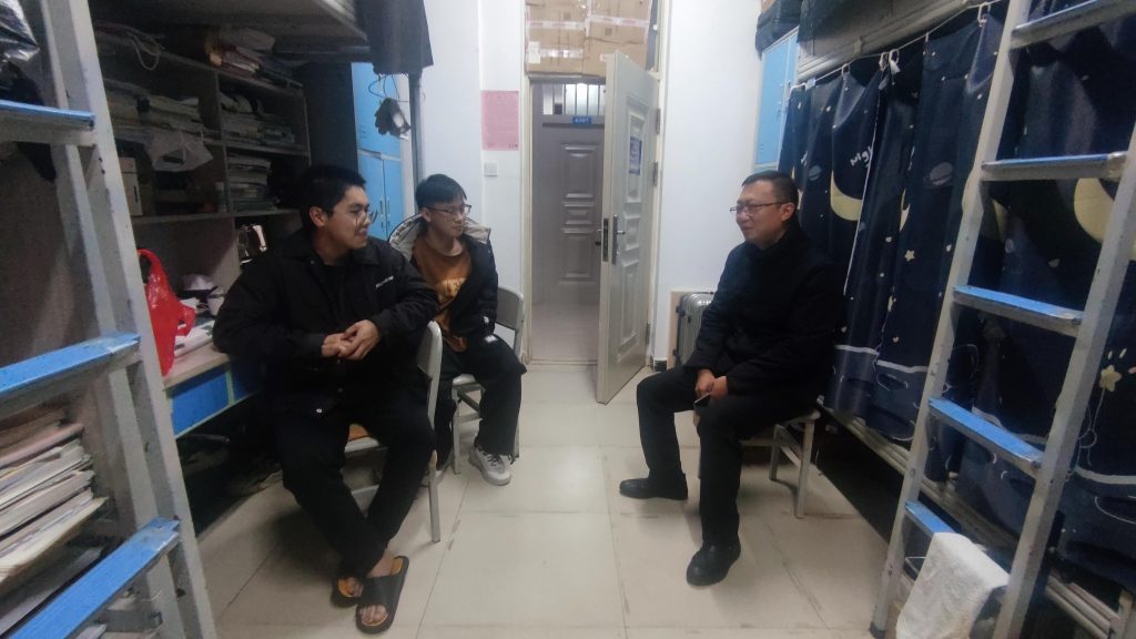 走访中,学院老师深入学生宿舍与同学们亲切交流,叮嘱同学开学调整好状态,做好新学期的学习规划,以饱满的精神状态投入学习生活中,同时,还进行了防电信网络诈骗的教育工作,并对各个宿舍进行安全排查,提醒同学保持宿舍干净卫生,预防春季传染病的发生。