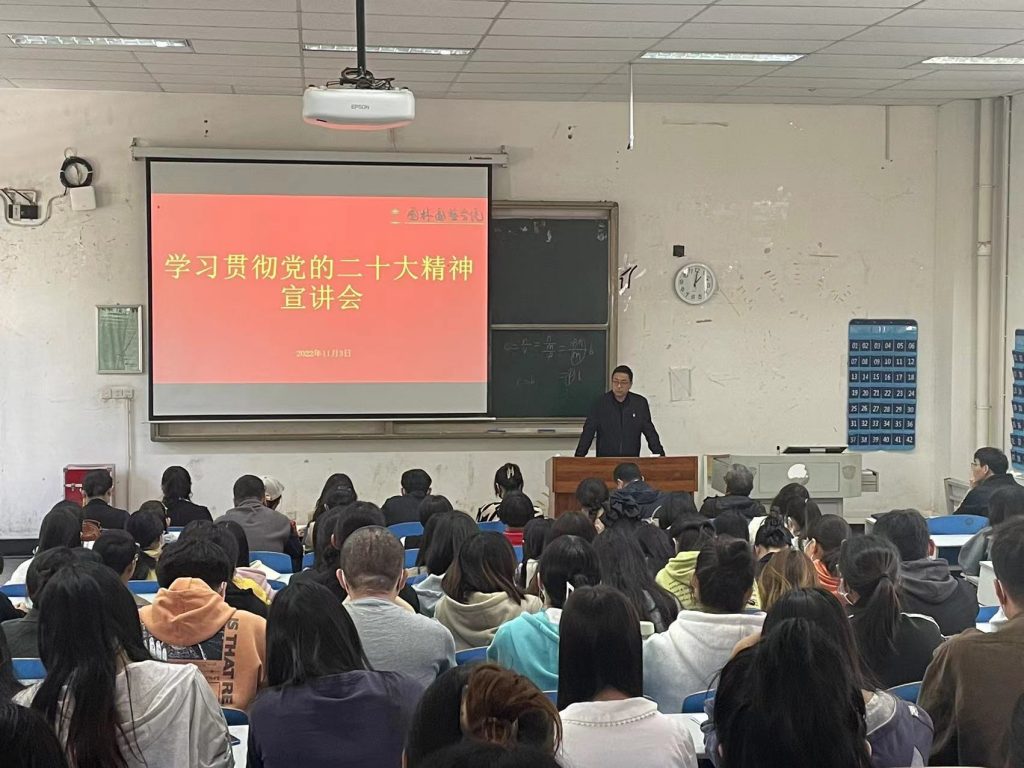 11月3日中午,园林园艺学院在第二教学楼阶梯教室召开党员大会,专题学习党的二十大精神。会议由学院党委书记李勤文主持,学院师生党员们参加会议。
