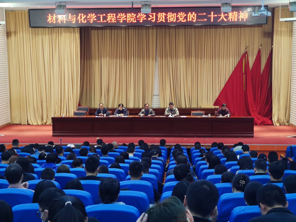 11月4日,材料与化学工程学院召开学习贯彻党的二十大精神专题会议。学院党政班子成员和全体党员参加会议。会议由学院党委副书记(主持工作)孙浩主持。