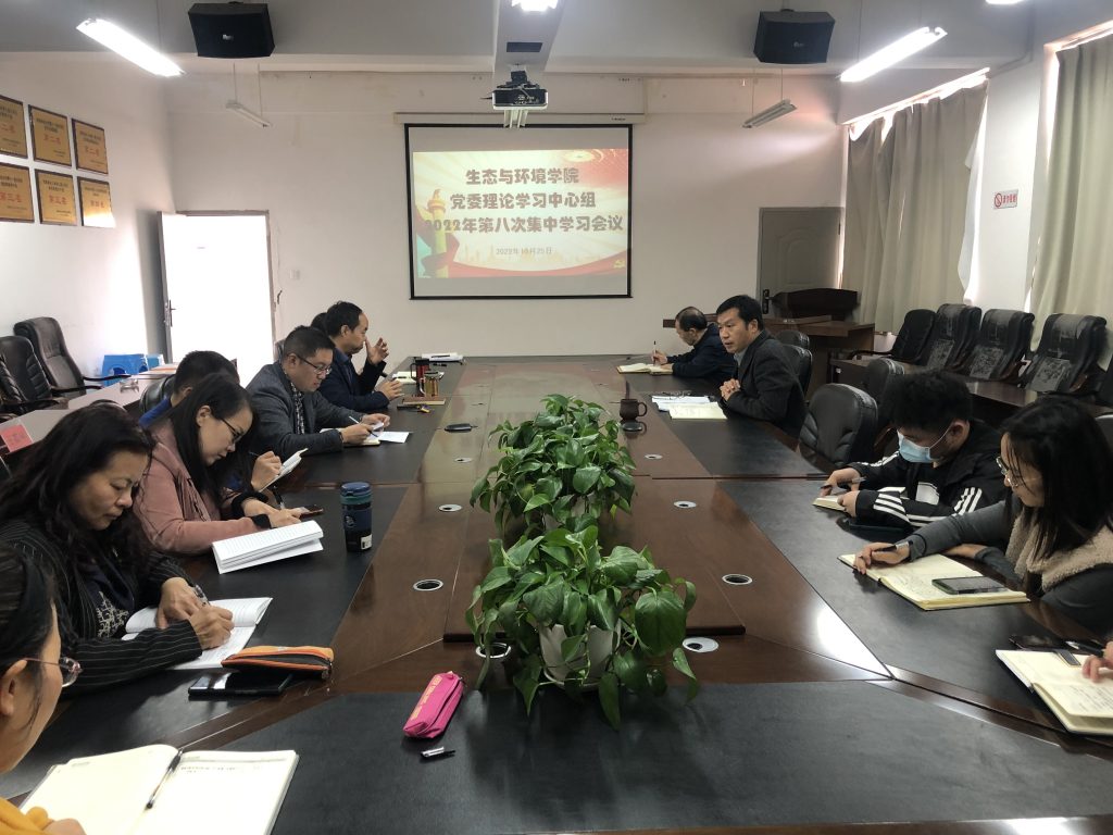 10月25日上午,生态与环境学院召开学院党委理论学习中心组(扩大)会议,专题学习党的二十大精神。学院党委理论学习中心组全体成员、学院各党支部书记参加会议。会议由学院党委书记刘建祥主持。