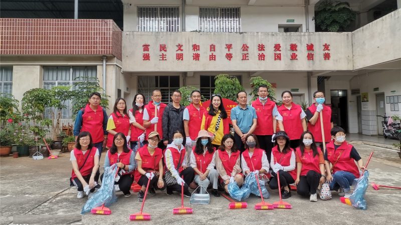 活动中,志愿者在学校家属区的各个角落对家属区进行了卫生环境大清扫,对垃圾收集箱、排水沟等重点区域进行了消毒杀菌,对退休老教师进行了走访,对做好垃圾分类进行了的宣传、引导。