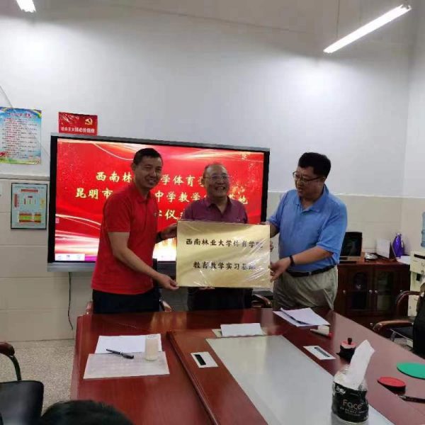 7月4日,体育学院院长郭荣一行到盘龙区白沙河中学签订教育教学实习基地协议并进行了授牌。白沙河中学的校长王予明、书记赵鸿翔以及学校领导班子成员和相关教师参加了本次仪式。