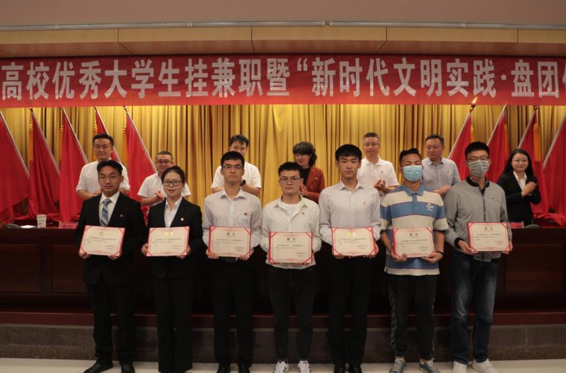 7月1日,盘龙区“团聚英才”高校优秀大学生挂兼职暨“新时代文明实践·盘团伙伴”公益项目启动仪式在盘龙区行政中心举行。启动仪式上,校团委书记杨欣与共青团盘龙区委书记李思言签订了《共青团bwin必赢唯一官方网站委员会与共青团盘龙区委员会合作共建框架协议》,参加启动仪式的领导还为盘龙区各级共青团学生兼职副书记代表颁发了聘书。