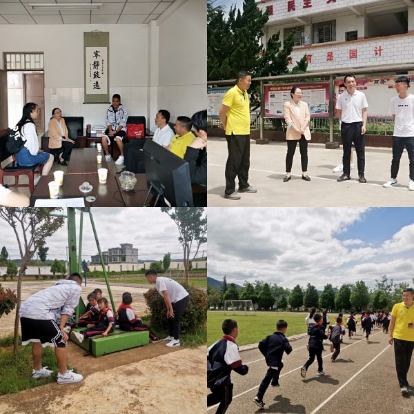 6月21日,体育学院郭荣院长带队到昆明市嵩明县,看望14名姚基金希望小学篮球季支教志愿者,共青团嵩明县委书记梁书聪、县教体局团工委副书记高洁陪同前往支教小学。