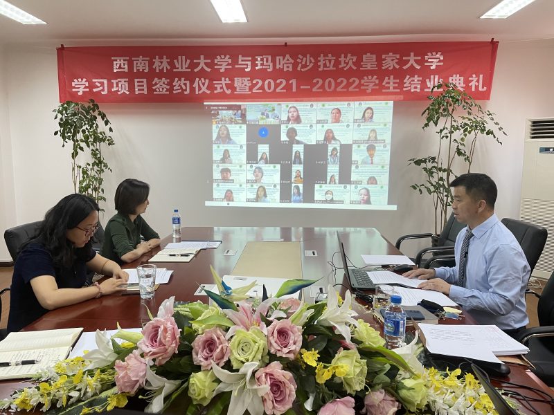 6月22日下午,国际学院与泰国马哈沙拉堪皇家大学人文社会科学学院举办了云上本科学生(2022-2023学年)学习项目补充协议签约仪式暨汉语专业本科学生(2021-2022学年)结业典礼。我校国际学院和泰国马哈沙拉堪皇家大学人文社会科学学院全体教职员工及51名2021-2022学年汉语本科项目学生出席了此次活动,典礼由国际学院副院长李晓虹主持。