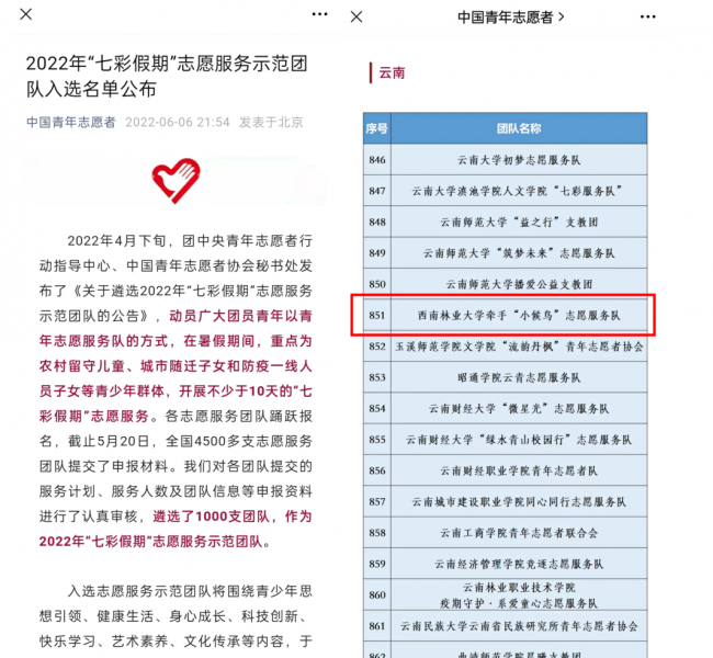 6月6日,团中央青年志愿者行动指导中心、中国青年志愿者协会秘书处公布了2022年“七彩假期”志愿服务示范团队名单,我校艺术与设计学院“牵手小候鸟”志愿服务队在全国参与申报的4500多支志愿服务团队中脱颖而出,成功入选。
