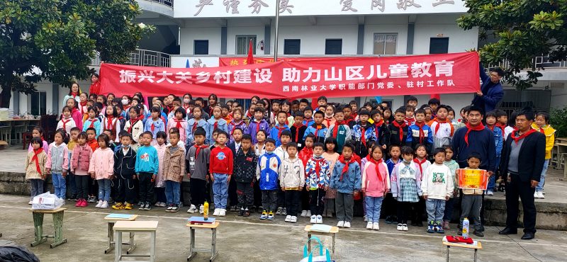 百年小学地处云南高寒少数民族山区,四周大山环绕,交通不便、教育设施简陋,全校共25名学生,只有一位代课老师,是我校驻村定点帮扶学校之一。自2021年以来,职能部门党委一直通过教育扶贫持续帮扶学校定点帮扶地——大关县木杆镇,组织全体党员同志为孩子们捐款献出一份爱心,相继向漂坝村584名小学生捐助爱心彩色画笔,向大关县复兴中学家庭困难学生李浩宇进行捐款帮扶。此次,在六一国际儿童节到来之际,职能部门党委和驻村工作队的同志们再次向大关县小朋友送上礼物,给孩子们捐赠了书包和文具,带去了六一的祝福和温暖。