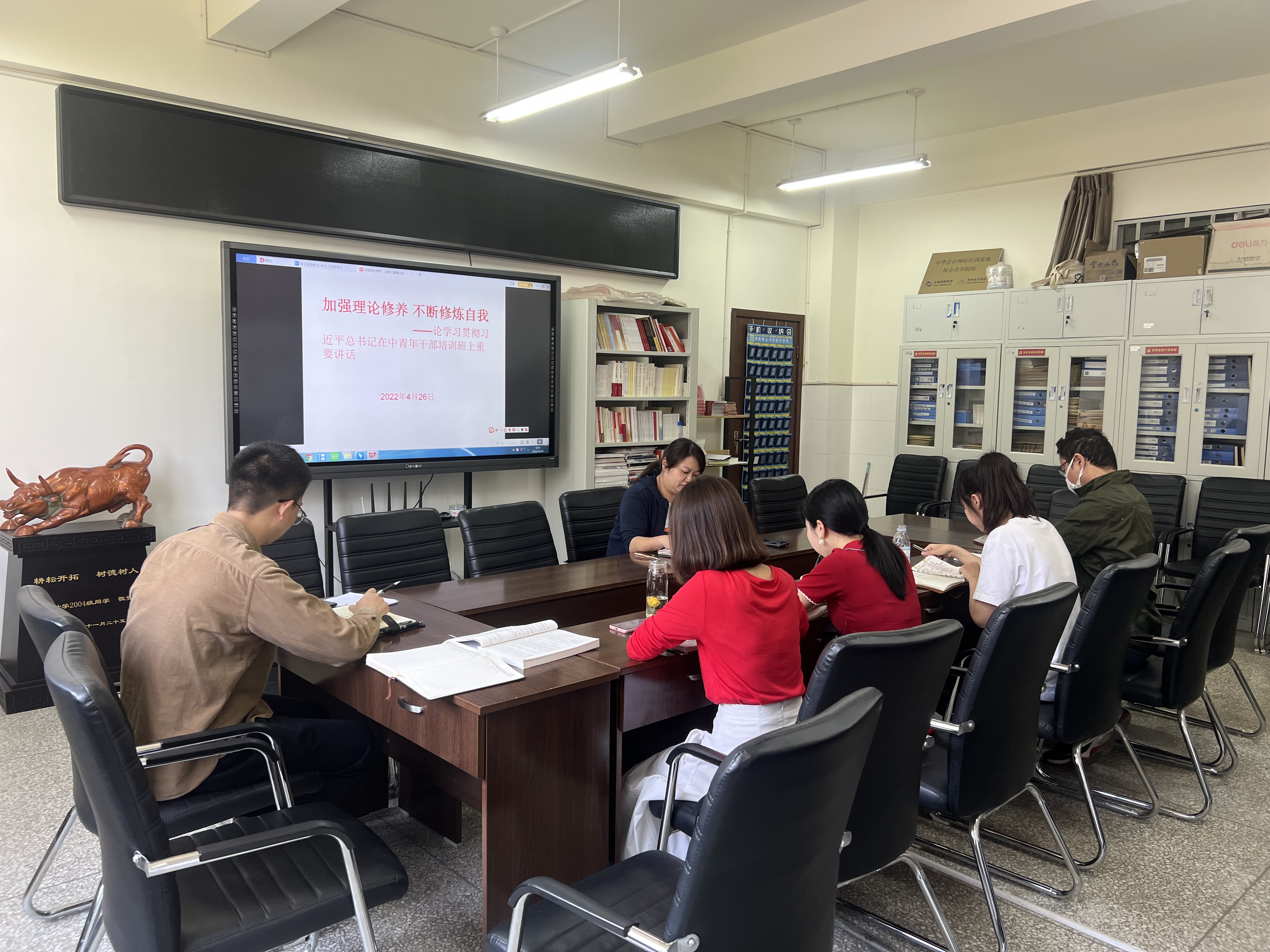 为加强会计学院学工队伍对学生的思想政治教育能力,努力提升学工队伍的理论知识和业务技能。4月26日,会计学院学工队伍开展“加强理论修养,不断修炼自我”理论学习活动。学院党委副书记赵芬以及全体学工队伍参加本次学习。