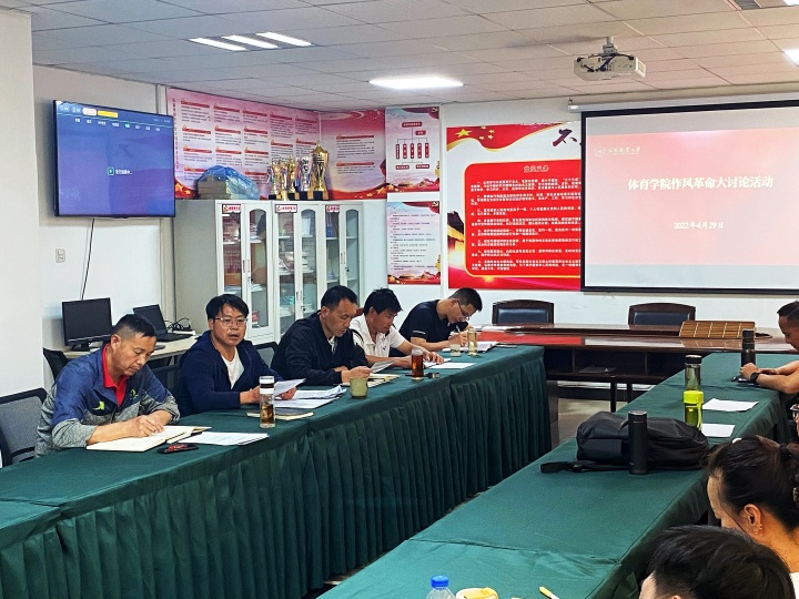 4月29日,体育学院组织开展作风革命大讨论,学院全体教师参加活动,学院党委书记汤为明主持讨论。