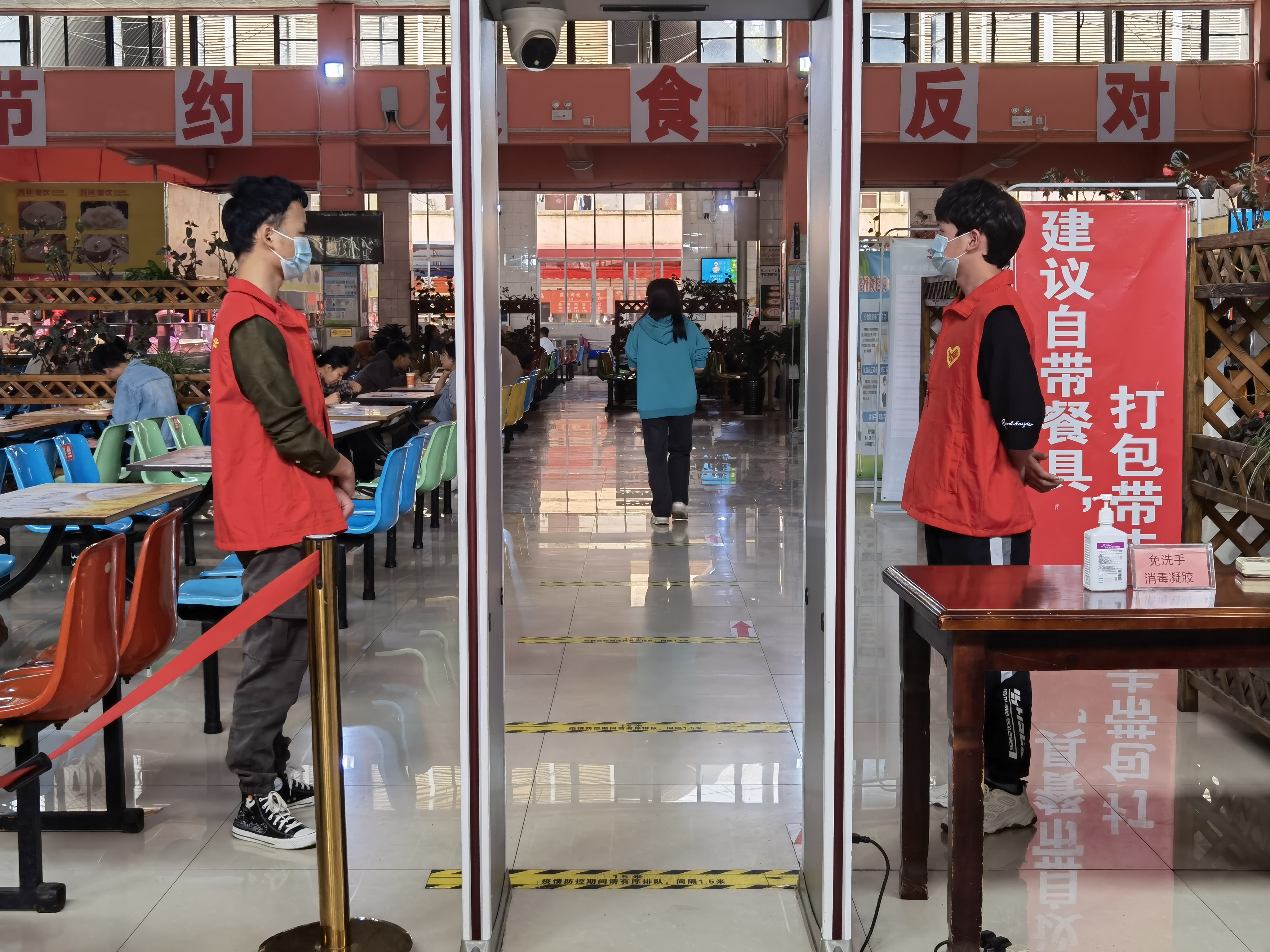 4月11日,生态与环境学院开始在校内各个食堂设立值班点,推进校园疫情防控常态化,宣传好人好事以及奉献精神,维持食堂用餐秩序。志愿者们穿上执勤服、戴上口罩,投入到推进疫情防控常态化的工作中,他们分布在食堂的各个门口,坚守在自己的岗位上,有条不紊地进行工作,提醒进出的同学佩戴好口罩,测量体温,为校园疫情防控工作贡献出自己的力量。为营造健康安全的校园环境,学校还在公共场所的门口准备了酒精、免洗洗手液、测枪等防疫物资。工作人员还会每日对校园宿舍、教室、厕所等公共区域进行全面消杀,做到全面消毒、不留死角。