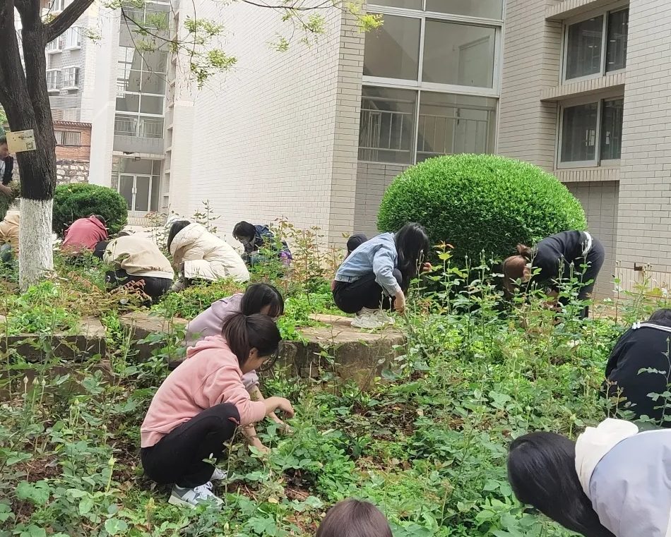 学院青协组织了70余名志愿者分别在第二图书馆、气象站周边开展除草活动。志愿者们充分发扬不怕苦不怕累的精神,细心地将杂草清除干净,同时格外注意不踩踏到种植的花草。看到整理后的草地,志愿者们纷纷表示享受到了劳动的乐趣,心里也洋溢着成就感。