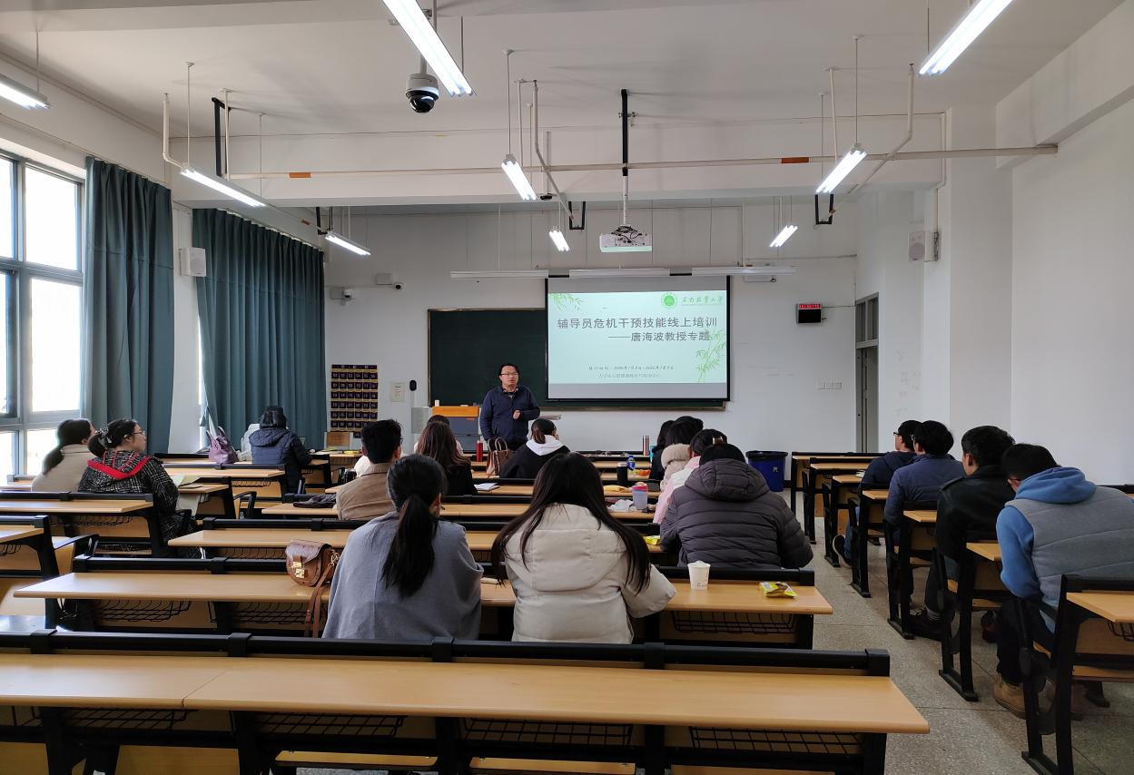 为深入贯彻落实《教育部办公厅关于加强学生心理健康管理工作的通知》,着力提升我校辅导员开展心理健康教育工作的能力,进一步提高学生心理健康教育工作的针对性、实效性,加强辅导员心理健康教育基本知识和技能,1月8日—9日,学生处组织我校辅导员参加心理危机干预技能线上集中培训,授课教师为中南大学心理咨询中心咨询专家、精神科执业医师、中南大学湘雅三医院应用心理学硕士生导师唐海波。