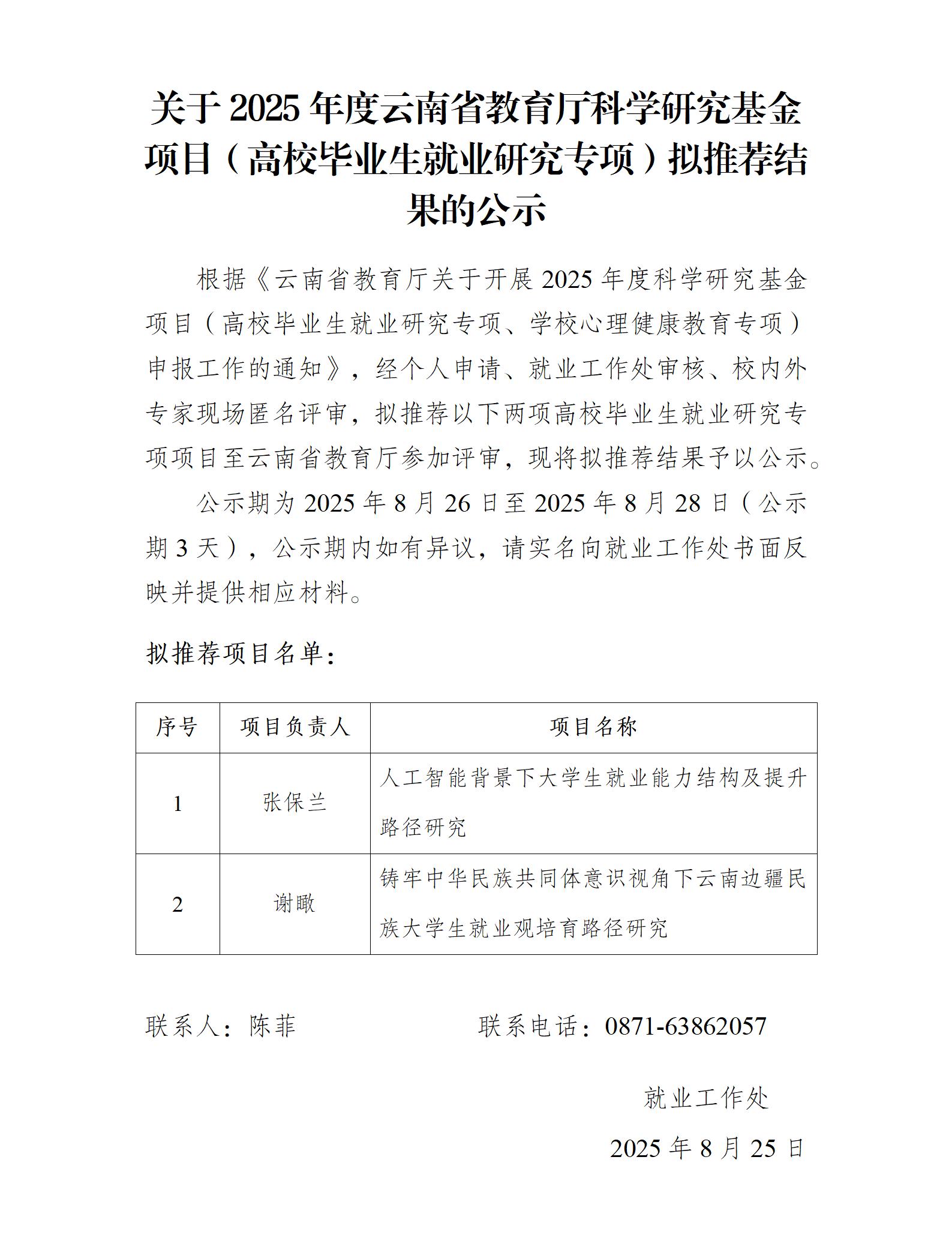 上一条:关于2025年度云南省教育厅科学研究基金项目(学校心理健康教育专项)拟推荐结果的公示
